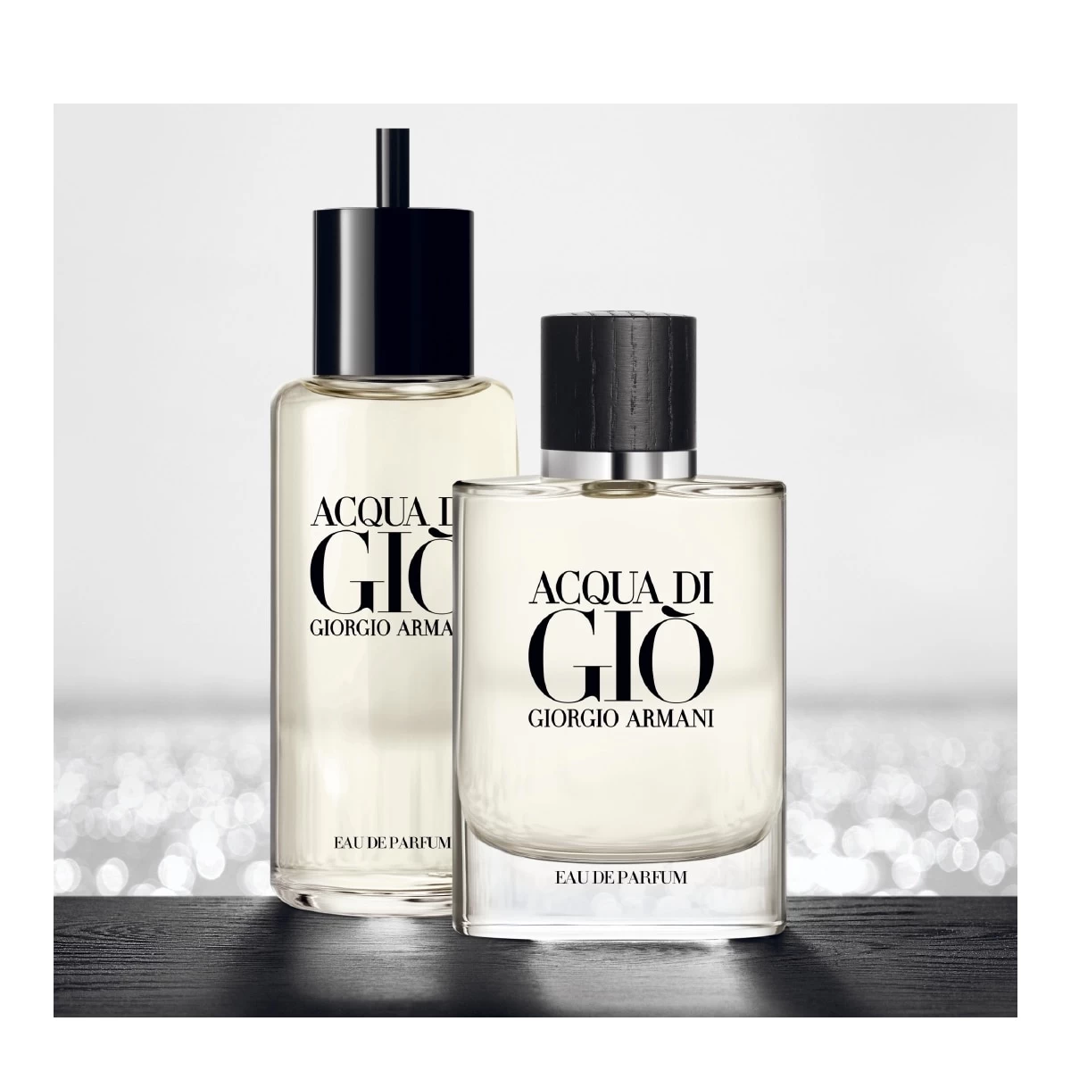 Le flacon emblématique d’Acqua di Giò a également été repensé pour cette nouvelle Eau de Parfum, serti d’un capot en bois sombre et désormais rechargeable sur tous les formats. Un flacon élégant conçu pour durer.