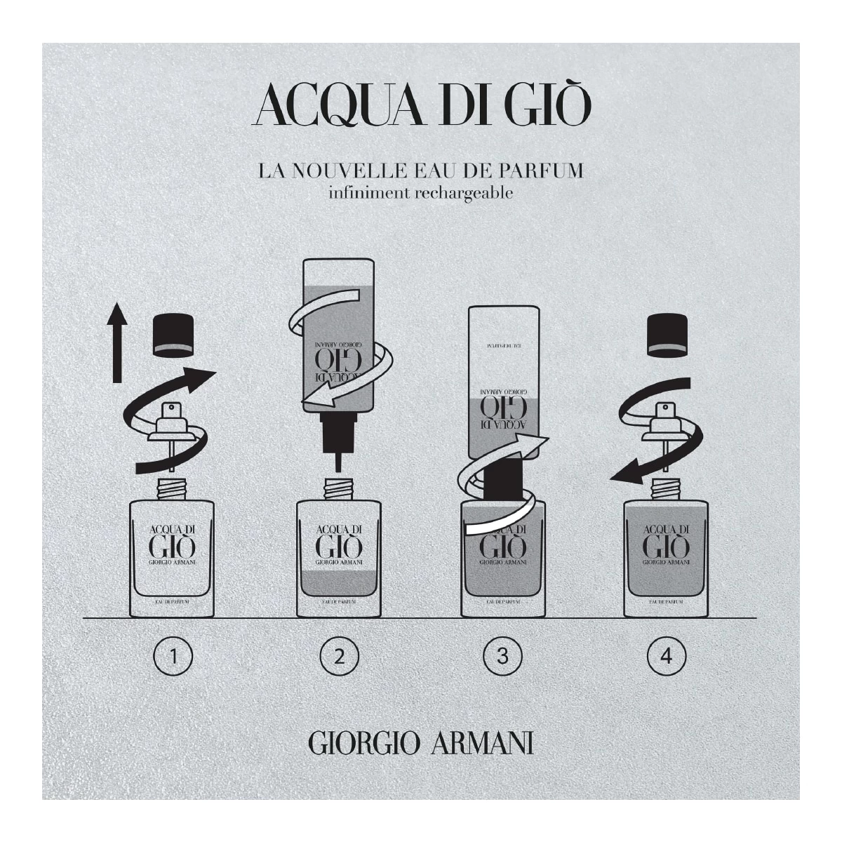 Giorgio Armani présente la nouvelle Eau de Parfum rechargeable Acqua di Giò, une réinterprétation de la fragrance iconique Acqua di Giò aux notes marines intenses, pour une fraîcheur qui dure à l’infini.