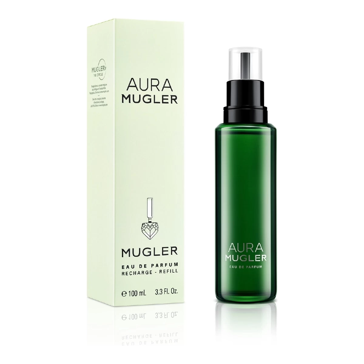 Aura MUGLER est un parfum puissant et instinctif qui incarne la rencontre du monde animal et du monde végétal en fusionnant fraîcheur florale et sensualité féline. Une Eau de Parfum au caractère affirmé qui diffuse des notes vibrantes et sensuelles. Avec Aura MUGLER, chaque femme découvre en elle une puissance insoupçonnée et laisse éclater toute sa féminité. Son aura resplendit avec force. Redonnez-vie éternellement à votre flacon Mugler rechargeable grâce à cette Recharge 100 ml. Elle vous permet de remplir votre flacon chez vous. Aura MUGLER est un parfum Oriental Floral Charnel unique aux notes instinctives qui vibrent et palpitent. Il fusionne fraîcheur florale et sensualité féline. Cœur instinctif Épine dorsale de la fragrance, fusion du végétal et de l’animal, cet accord exprime le cœur battant de l’instinct qui vibre et palpite grâce à la Liane Fauve -exclusive à Aura MUGLER- surprenante par ses notes complexes de feuilles fraîches, dragée-vanillées, et animales. Cœur floral Comme une immersion au cœur d’une végétation luxuriante à la fraîcheur pure et verte, cet accord dévoile un duo de notes vertes et florales : l’association originale de la Feuille de Rhubarbe aux notes acidulées et croquantes, à la Fleur d’Oranger lumineuse et délicieusement féminine. Ensemble, ils diffusent une fraîcheur vibrante intense Cœur animal Profond et puissant, cet accord évoque la chaleur de la peau, une sensualité féline, attirante et sauvage. Cette sensualité est révélée par la Vanille Bourbon, suave et addictive, associée au Wolfwood, bois aux volutes chaudes et intenses. Proposée dans son flacon recharge, l’Eau de parfum Aura MUGLER vous permet de remplir votre flacon une fois que celui-ci est vide. Un geste responsable pour être sûre de ne jamais manquer d’Aura MUGLER. COMMENT RECHARGER VOTRE FLACON ? Via une Recharge 100 ml à commander en ligne qui vous permet de remplir votre flacon chez vous en 3 étapes : Etape 1: Retirez le capot de votre flacon de parfum Etape 2: Dévissez la tige du spray Etape 3: Versez la fragrance dans votre flacon à l’aide de l’entonnoir Etape 4: Vissez la tige et refermez votre flacon de parfum.