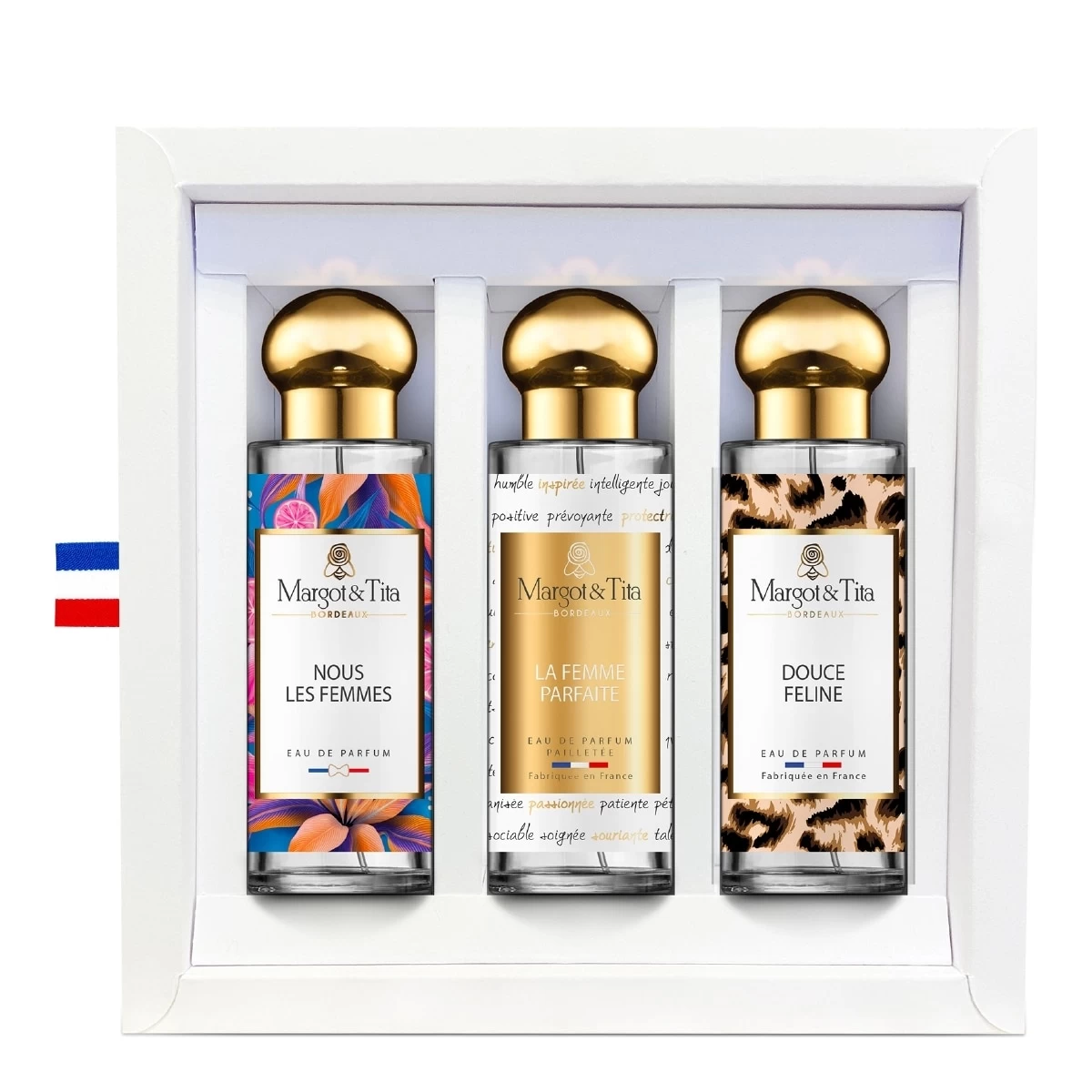 COFFRET TRIO « NOUS LES FEMMES » (3X30ML) : Pour des femmes sensuelles et libérées, le coffret trio Nous les femmes est parfait ! Découvrez ce coffret de 3 parfums aux notes orientales, florales et fruitées pour offrir ou se faire plaisir.