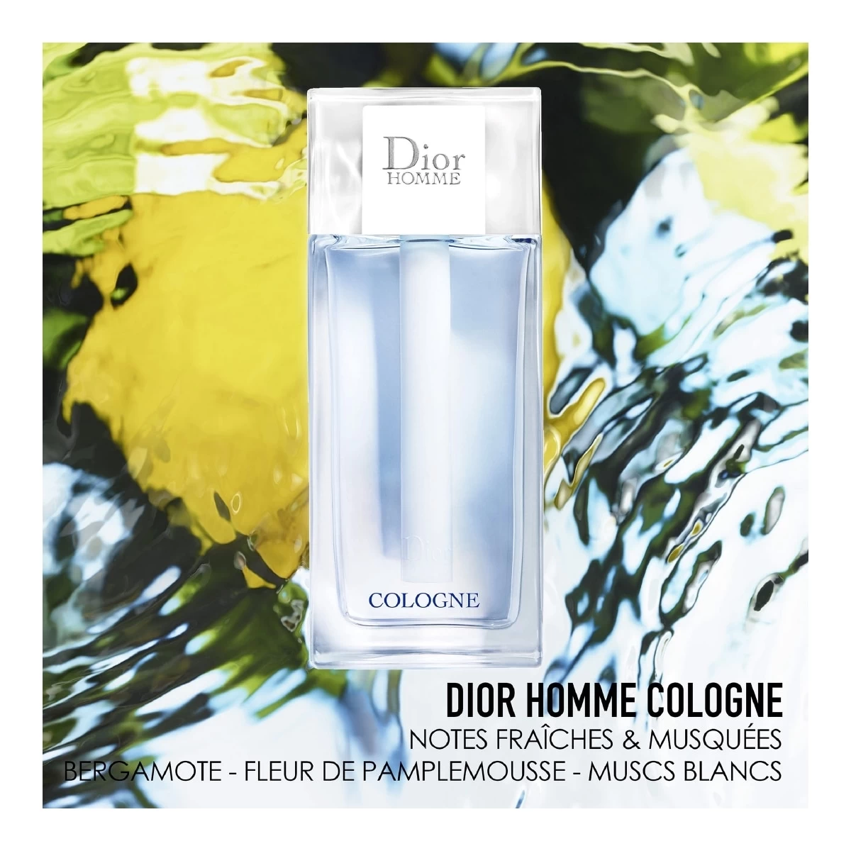 Dior Homme Cologne, une eau de Cologne masculine radicalement épurée qui, par l’ajout de la Fleur de Pamplemousse, réinterprête la fraîcheur de la mythique Cologne.