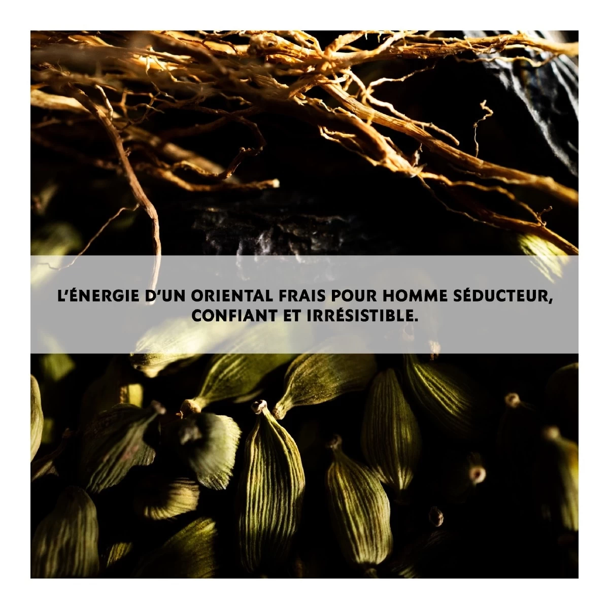 Le flacon iconique La Nuit de L’Homme Yves Saint Laurent est habillé d’un luxueux dégradé de noir et révèle un jus mystérieux. Une sophistication venant contraster la force éminemment virile du capot hexagonal laqué de noir.
