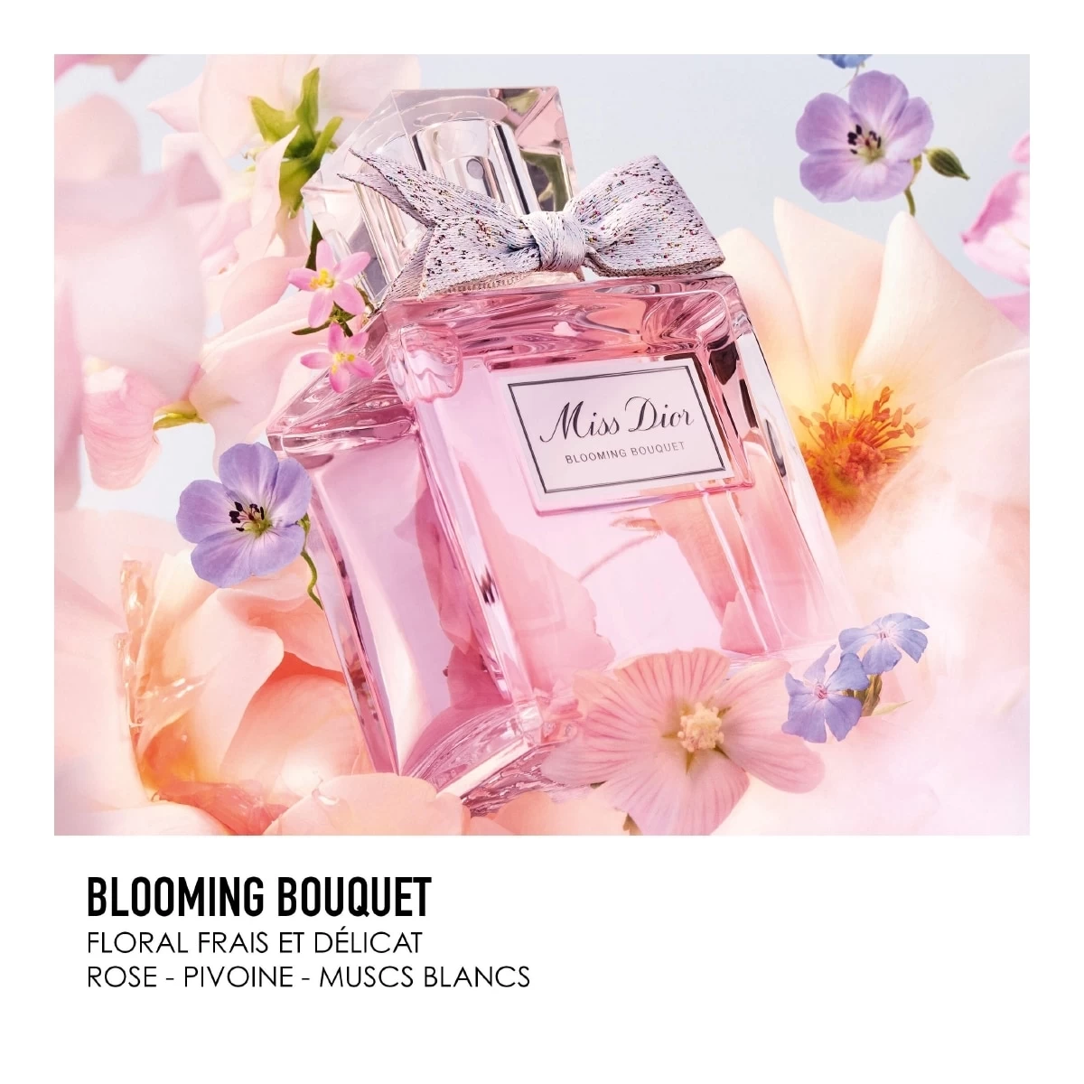 Fraîche et tendre, Miss Dior Blooming Bouquet est une eau de toilette facettée et spontanée. Cette composition est l’image olfactive d’un généreux bouquet de fleurs tout juste écloses, dont l’intensité fait écho à la tendresse.
