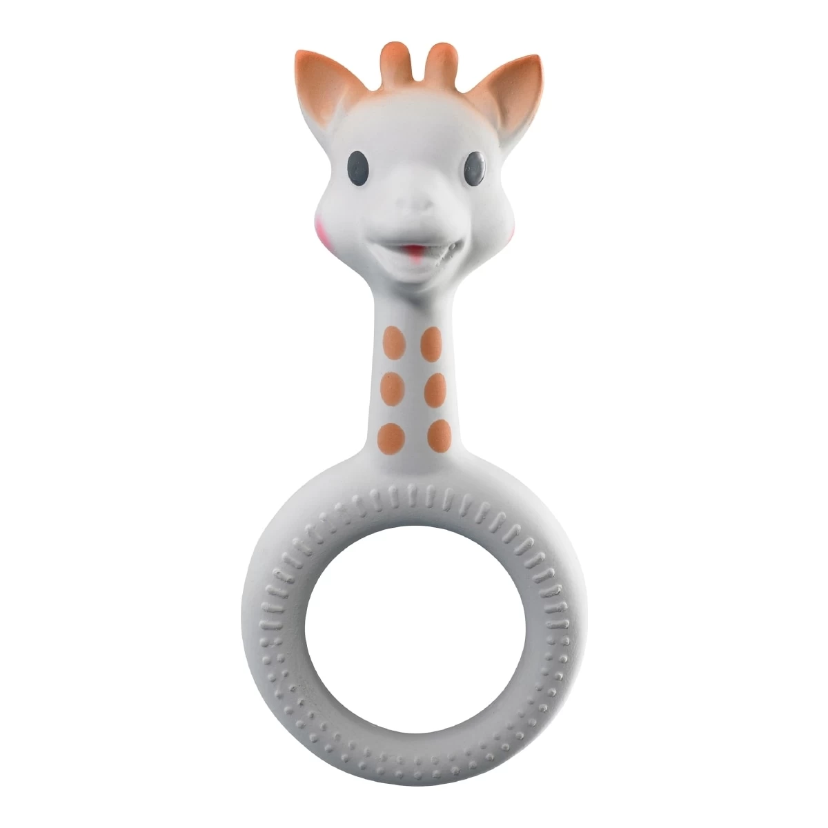 En cadeau, un hochet anneau Sophie la girafe en caoutchouc 100% naturel pour accompagner bébé dans son éveil quotidien ! Une matière souple, saine et naturelle avec de nombreuses parties à mordiller et une surface multi-texturée pour un massage doux des gencives. Léger et facile à saisir grâce à son anneau.