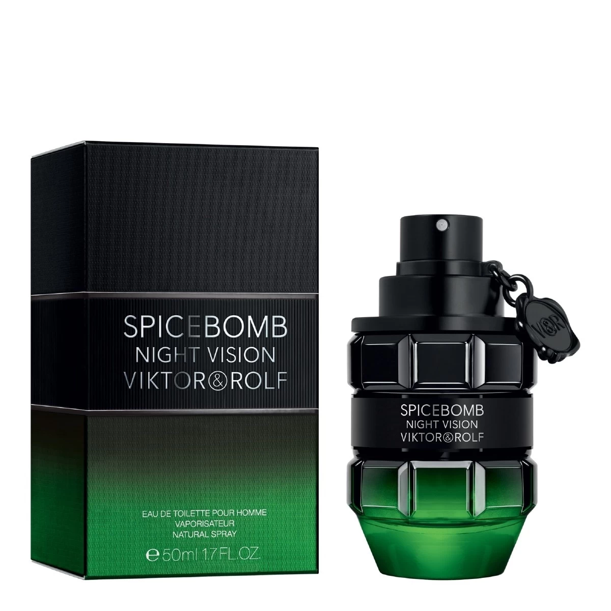 SPICEBOMB NIGHT VISION, la nouvelle arme de séduction massive pour l’Homme qui veut faire de la Nuit son terrain de jeu. Un parfum ultra sensuel aussi frais que brûlant, aussi addictif qu’explosif. LUMIÈRES ÉTEINTES, LE JEU PEUT COMMENCER Avec Spicebomb Night Vision, VIKTOR&ROLF explorent le territoire de la Nuit de la plus brûlante des manières. La séduction au masculin se vit lumières éteintes dans un jeu nocturne obsessionnel et provocant. UNE GRENADE TAILLÉE POUR LA NUIT. Inspiré de la technologie de vision nocturne, le flacon Spicebomb Night Vision se plonge dans l’obscurité : un noir profond éclairé par un flash vert émeraude habillent les facettes de la grenade iconique. UNE EXPLOSION DE FRAÎCHEUR VERTE ET D’ÉPICES ARDENTES Une fougère orientale aux facettes épicée et aromatique qui révèle sa nature profonde dans le noir absolu. Moderne et audacieux, Spicebomb Night Vision crée une nouvelle addiction nocturne aux contours explosifs.
